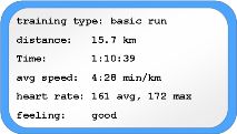 training otherwise was good today, a basic run of 12 or more km, my standard loop (click on the picture to the right) is slightly more. weather conditions nearly perfect, 17-18 degrees celsius, cloudy, but no rain. now after the helsinki city marathon there are only few runners out there, ja, ja, only the tough ones continue into the fall and our micke-midlife definitely wants to be counted to those. had to hold me back several times not to over do it today, not to go too fast. the tough session is tomorrow.